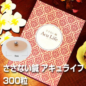 ささない鍼 アキュライフ300粒■商品詳細ささない鍼 アキュライフ300粒本体サイズ(1粒あたり):直径約0.8cm内容量:160粒素材:(粒子部)鉄、クロム他、(シール)塩化ビニール、(粘着部)アクリル系セット内容:医療機器添付文書、取り扱いガイド *金属アレルギーの方は医師とご相談の上ご使用ください。