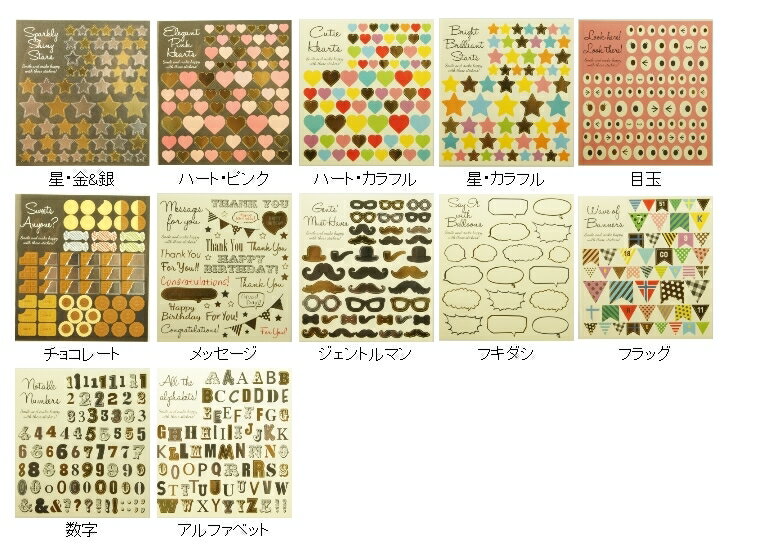 オリジナルシステム手帳はこちら↑星・金&銀ハート・ピンクハート・カラフル星・カラフル目玉チョコレートメッセージジェントルマンフキダシフラッグ数字アルファベット